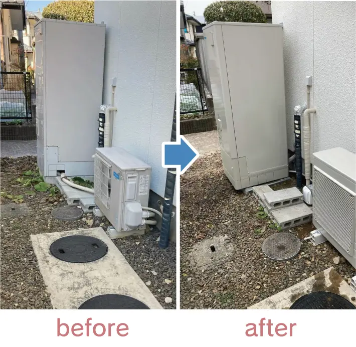 本体交換とあわせて配管類も整理・再断熱し、見た目もスッキリ。