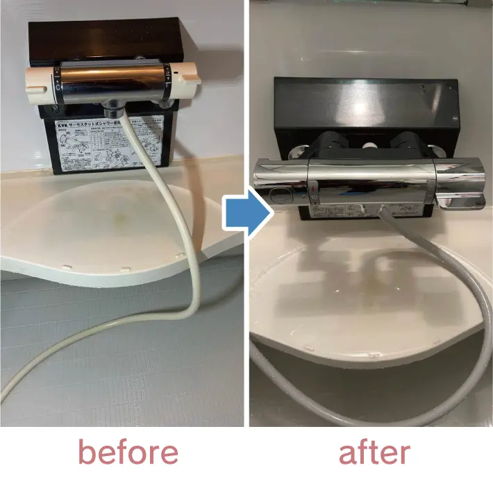 古くなった浴室用水栓を、**KVKの節湯型サーモ水栓「FTB100KT」**に交換しました。