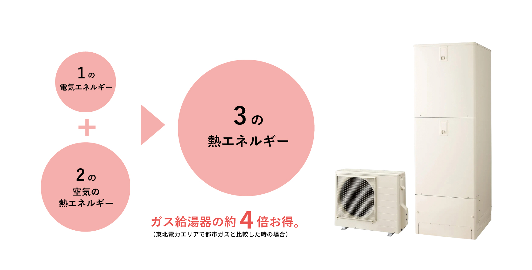 • 電気と空気の力でお湯をつくる給湯器です