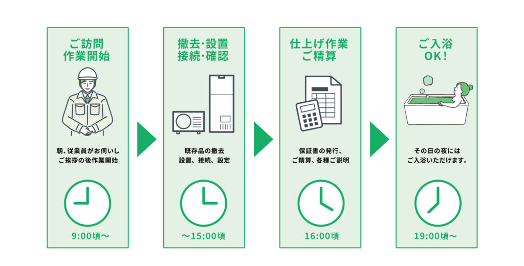 基本は当日から使用できますが、満タン沸き上げまで時間がかかる場合があります。