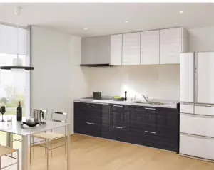 [間口180cm仕様について]コンロ用キャビネットにはらくパッと収納が設置できません。加熱機器は間口45cmのホーロートップコンパクトタイプのみの対応となり、レンジフードは間口75cmに変更になります。