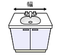 以下の数字は、洗面台の幅を表しています。