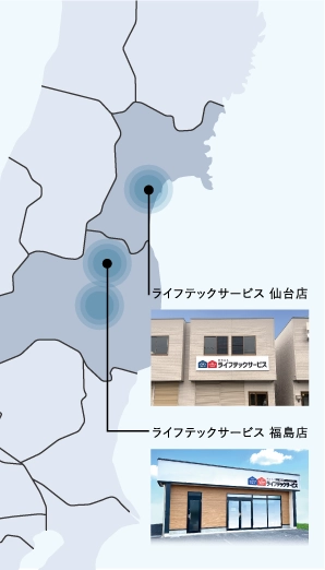 福島市と仙台市に拠点を置き、各エリアに専任スタッフを常駐させています。